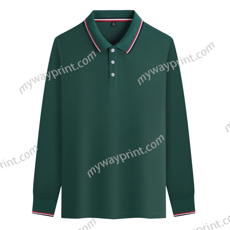 AMD|1100ポリエステル厚手ユニセックス長袖POLOシャツ8色6.5OZ