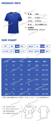 生地:ポリエステル100% 5.0OZ(170g/㎡)